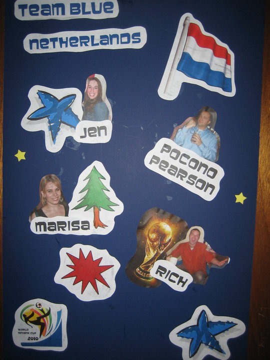 Award a trophy (homemade or purchased online) to the winners. Here is Holly & Pete’s homemade creation for the 2011 Minisink World Cup.
