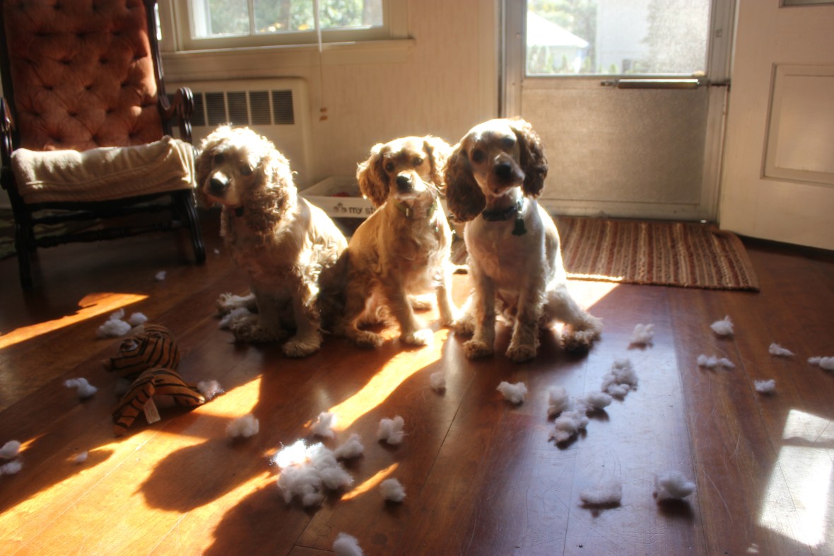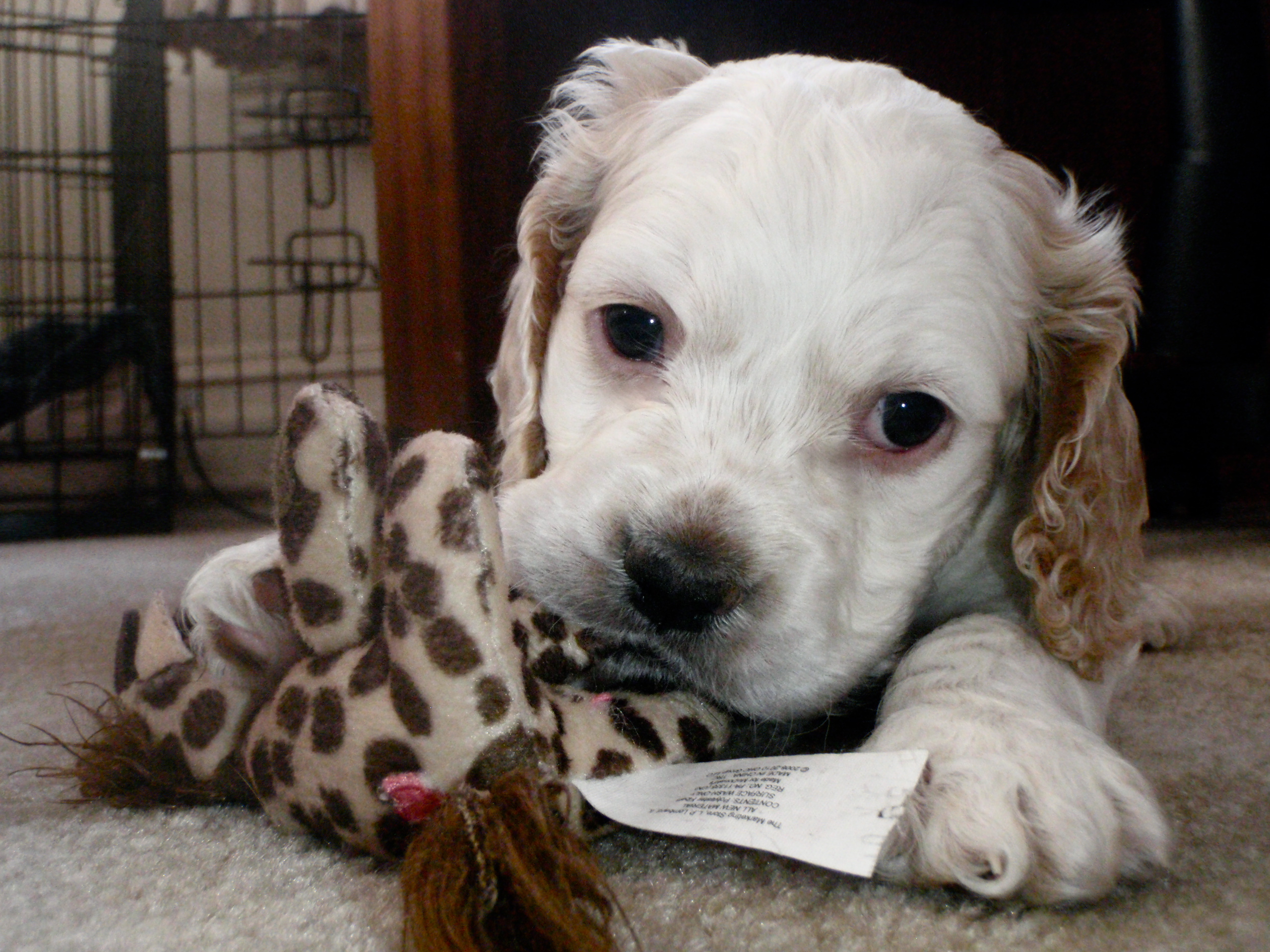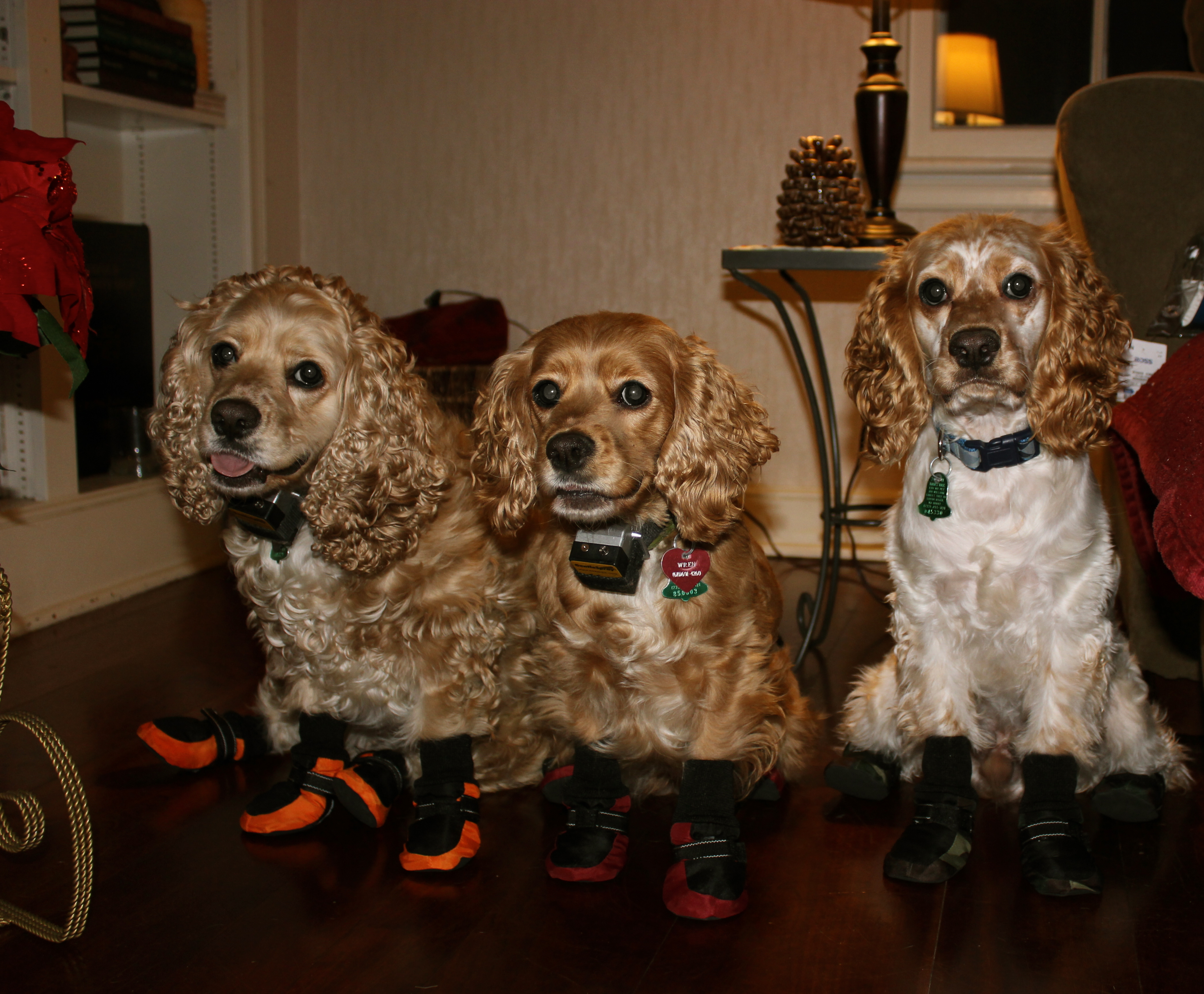 First I will tell you a little about them. Their names, in order of arrival, are Wren, Gracie, and Gryphyn. Funny side note: it’s the only order I ever say their names in. Wren is Gracie’s mom, and Gracie is Gryphyn’s mom. Wren came into my life a little more than 4 years ago. It was after my families dog passed away (also a cocker spaniel, Taylor.) I begged my parents to let me get another dog, they finally relented and I was off on a mad search for a puppy. My mom had 2 stipulations: it had to be a female and it HAD to be a cocker spaniel. Well, a little tidbit of information about me is that I have next to no patience. So since it was taking longer than I thought to find a dog, I decided to name her. I decided on the name Wren, for no apparent reason than I thought it was cute. My family hated it, but I didn’t care. 4 weeks later I called someone about an ad in the newspaper and an hour later I was going to get her. On the phone they told me there was only one female left. No one knew this, but I didn’t care WHAT the dog looked like, I had waited long enough and I was bringing little Wrenny home with me. Low and behold, my little Wren turned out to be just that. The littlest and brownest of the litter, and now the littlest and brownest of all our cockers…just like a Wren. Talk about living up to a name.