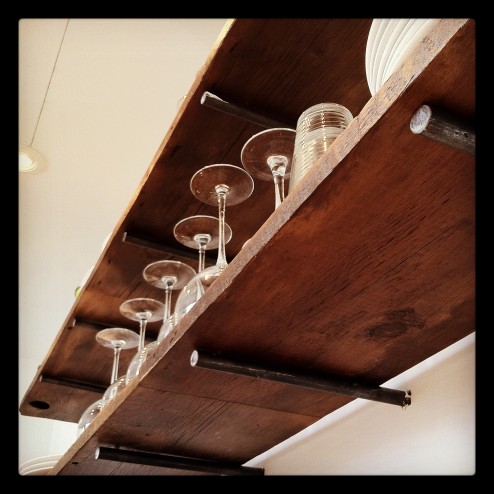 • Modern with respect for touches of the house’s heritage in the exposed brick, old siding used as shelves, and creaking floors. Jon says it’s a 21st century house built-in the 1860’s