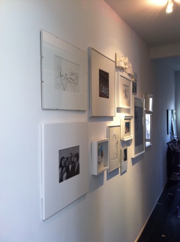 • Photo Wall – Featuring black & white photos from their wedding, travel and sketches of their design work
