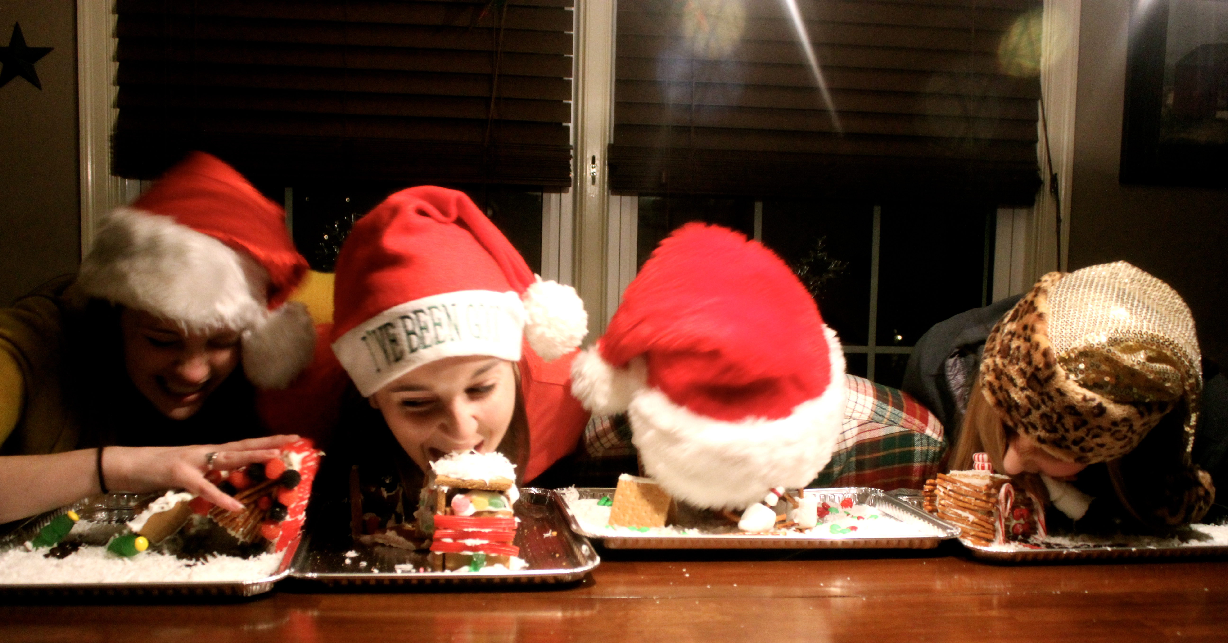 December 16- Build a gingerbread house. Hands down, least favorite day! They always turn out terrible so we destroy them in the end.