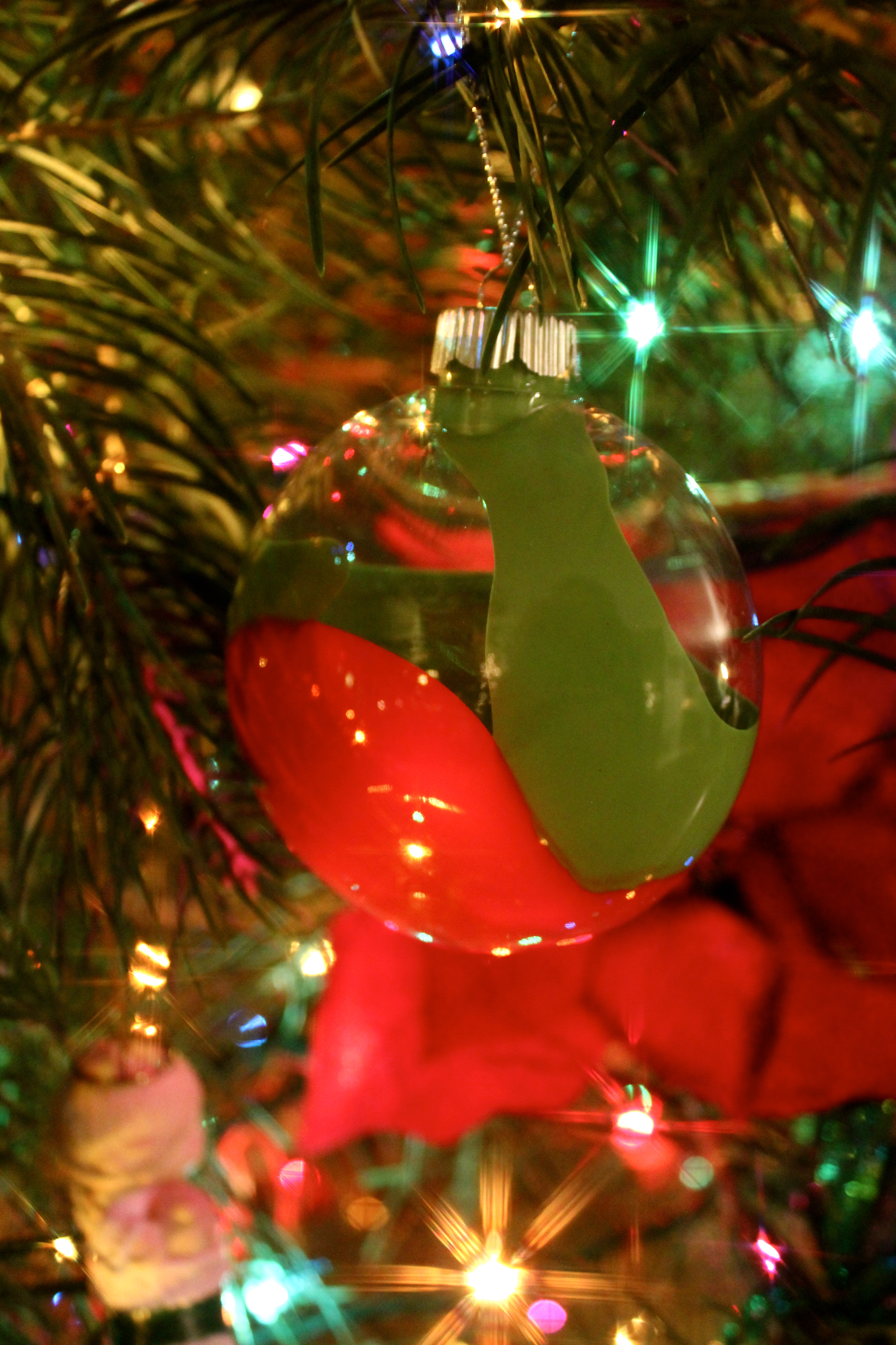 my other ornament. Clear craft ornament with red and green paint inside…just swirl it around!