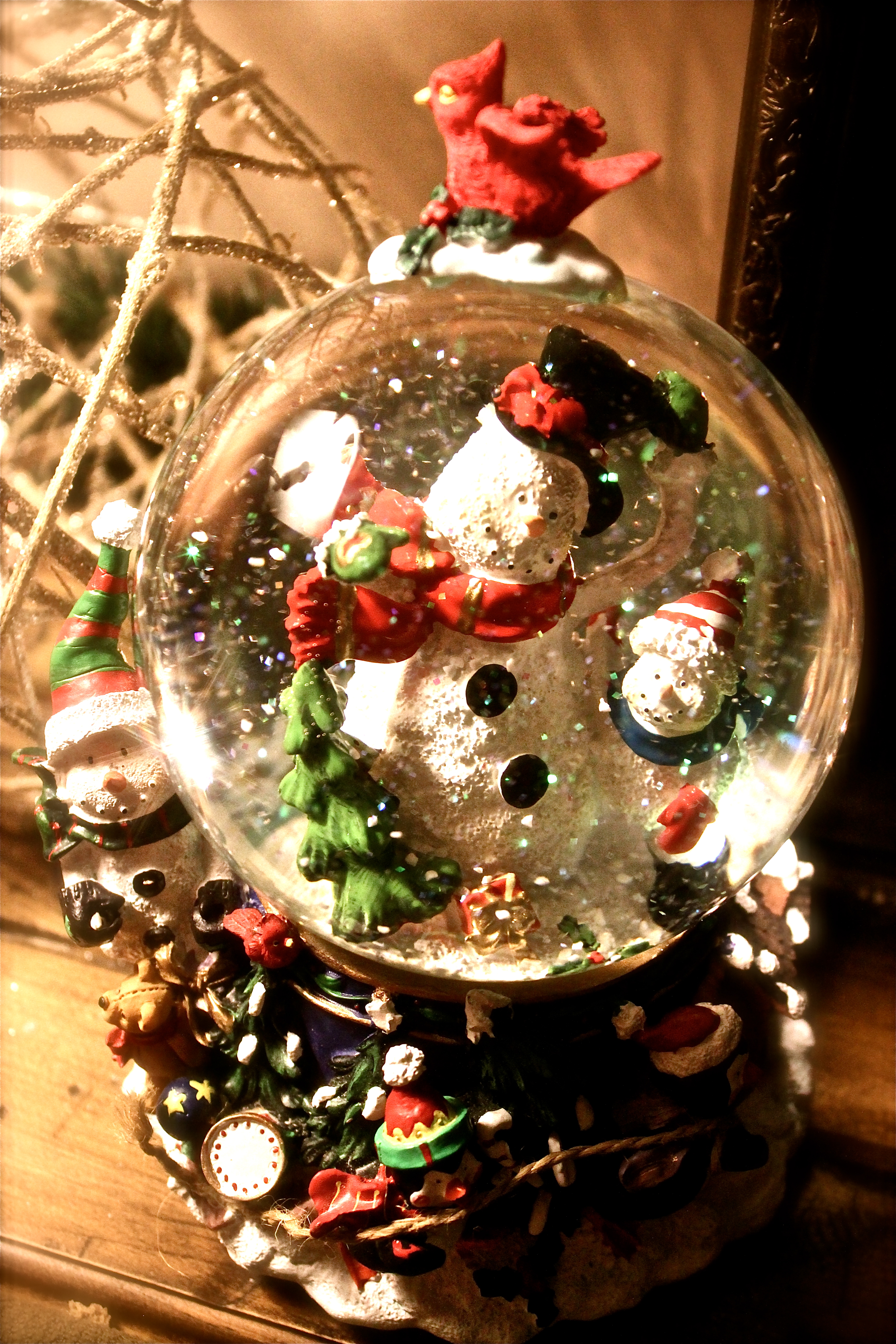 this was one of mine, just a clear craft ornament and some snow-tex and glitter. Looks like a real snowball!