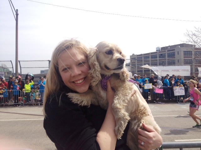Photos above: Our block on Beacon this winter & Sadie and I cheering on the runners at Mile 25