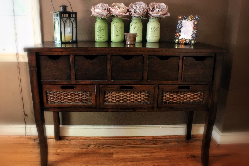 Recently, I have had quite the crafting itch. First, it was getting interested in buying all kinds of stamps and ink to make greeting cards and stamping wrapping paper and gift bags. Then, I was looking around the house and felt the need to pack up all of my spring mason jar projects so I could start to update a little. I decided that painting the jars would be a fun project. So that’s what I did. First up was ombré jars for our bedroom. So I went to the craft store and spent under $10 for all of my supplies. Since I already had mason jars at home, it was just some acrylic paint and clear satin spray paint. Then, I got to painting. Since I was doing ombré jars, I mixed my paint in 4 separate dishes, adding a little more white paint each time. Then I painted 2 coats of the paint on the outside of each jar. I let them dry for 24 hours, which is the hardest and most important part. Since I was going to distress them, if you sand them too soon they will gum up and the paint will come off in huge chunks. I used a sandpaper block and a nail file to sand them the next day. Then I sprayed 2 coats of clear spray paint on them. They look awesome!