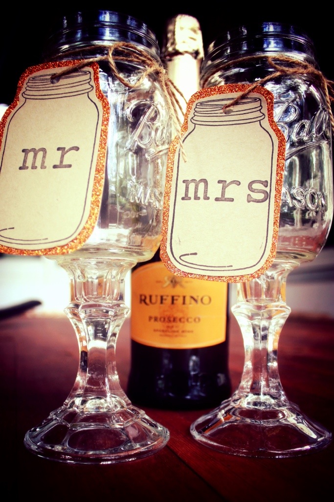 Recently, a good friend of mine at work got engaged. I have only known her for a year, but honestly, she is one of my most favorite people ever. She reminds me so much of myself (hah. Sadly, I’m only half joking!) On a search for the PERFECT engagement gift, I decided I was not going to buy one. Jackie, like myself, is a pretty crafty person. We have the same likes and home decor style (except for my weird obsession with leopard that does not fit my personality nor home style.) I decided that nothing I could buy would really be all that impressive to such a Crafty McCrafterson like herself. And quite frankly, this was one of those times when actually creating something just seemed so much more special and meaningful to me. So, that’s what had to be done. I chose to make her some wine glasses for her and her hubs to be. Now, whether she chose to use them at the wedding wasn’t really my intention (but I’m super proud to say that she is! Or, at least, that’s what she told me.)