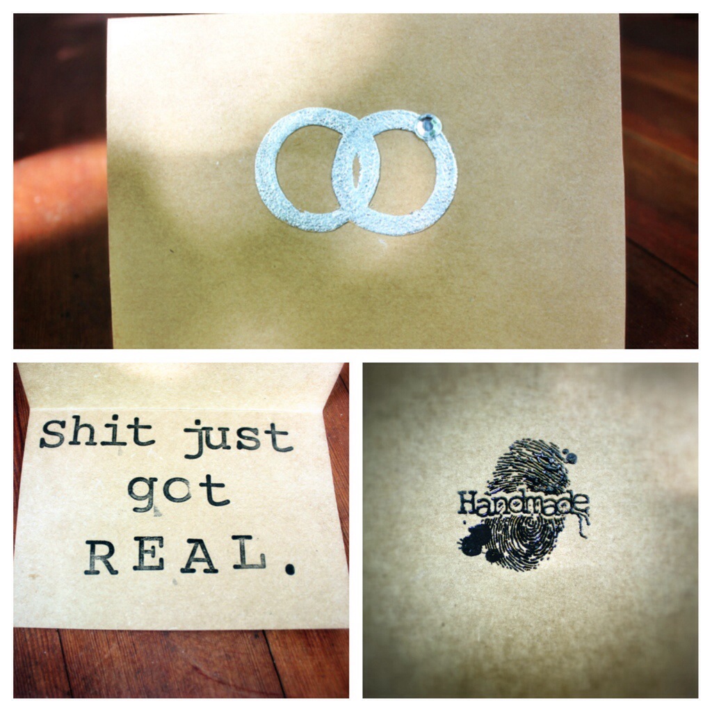 The tools needed to make them were incredibly cheap and easy. I feel it’s almost a crime for what ONE of these sell for in the store. All I needed were 2 mason jars, e6000 craft glue, and candlesticks from the dollar store. Seriously. That’s it. I threw in a bottle of Prosecco, and a hand stamped gift bag and a card, and I was good to go! She loved it, and was quite impressed that it was handmade.