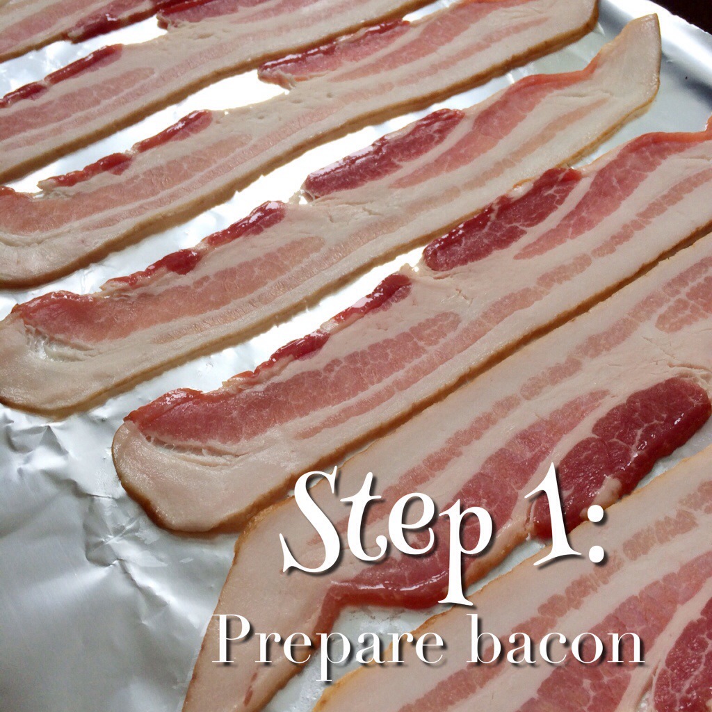 I think baking the bacon in the oven is perfect for this purpose because they don’t curl and get all squiggly.