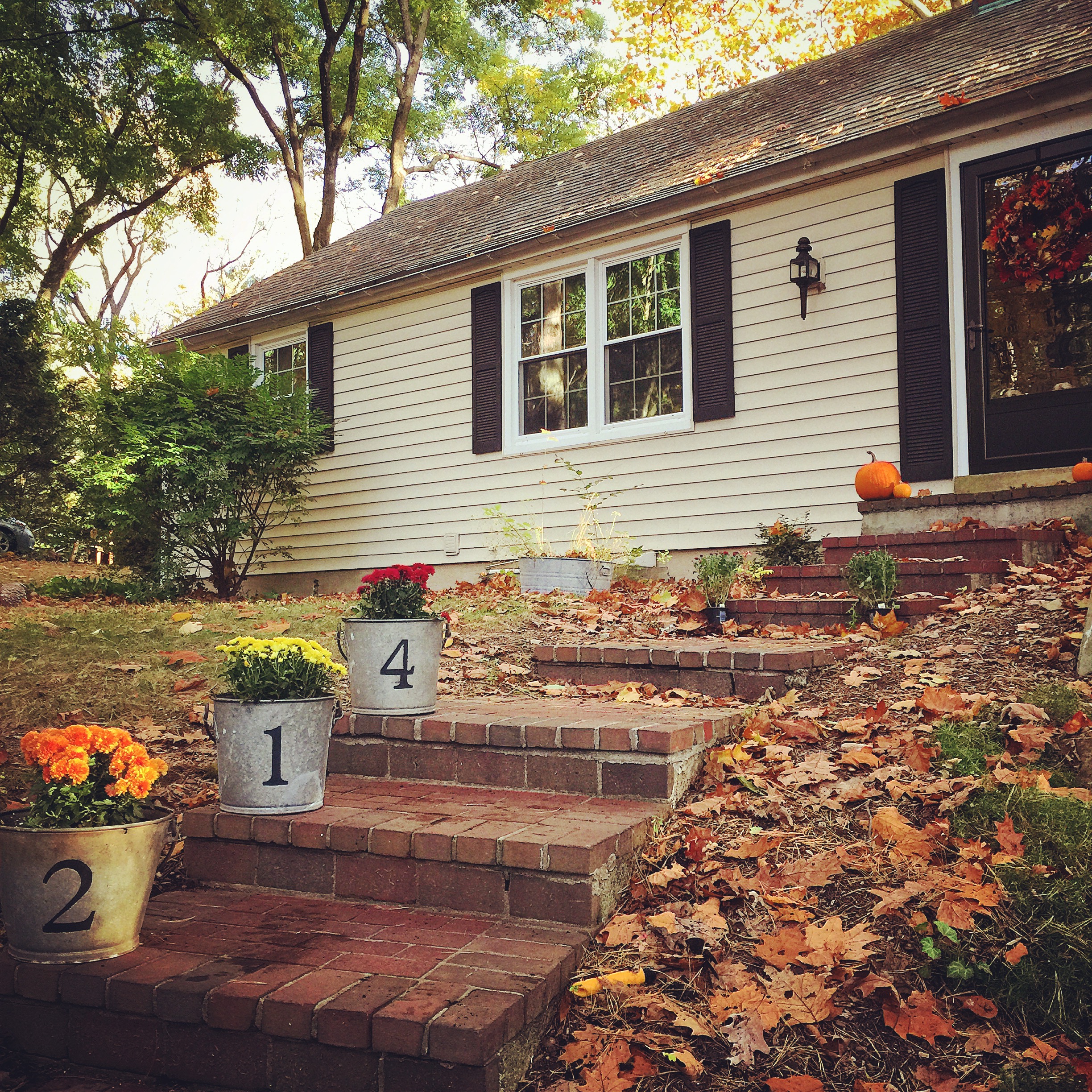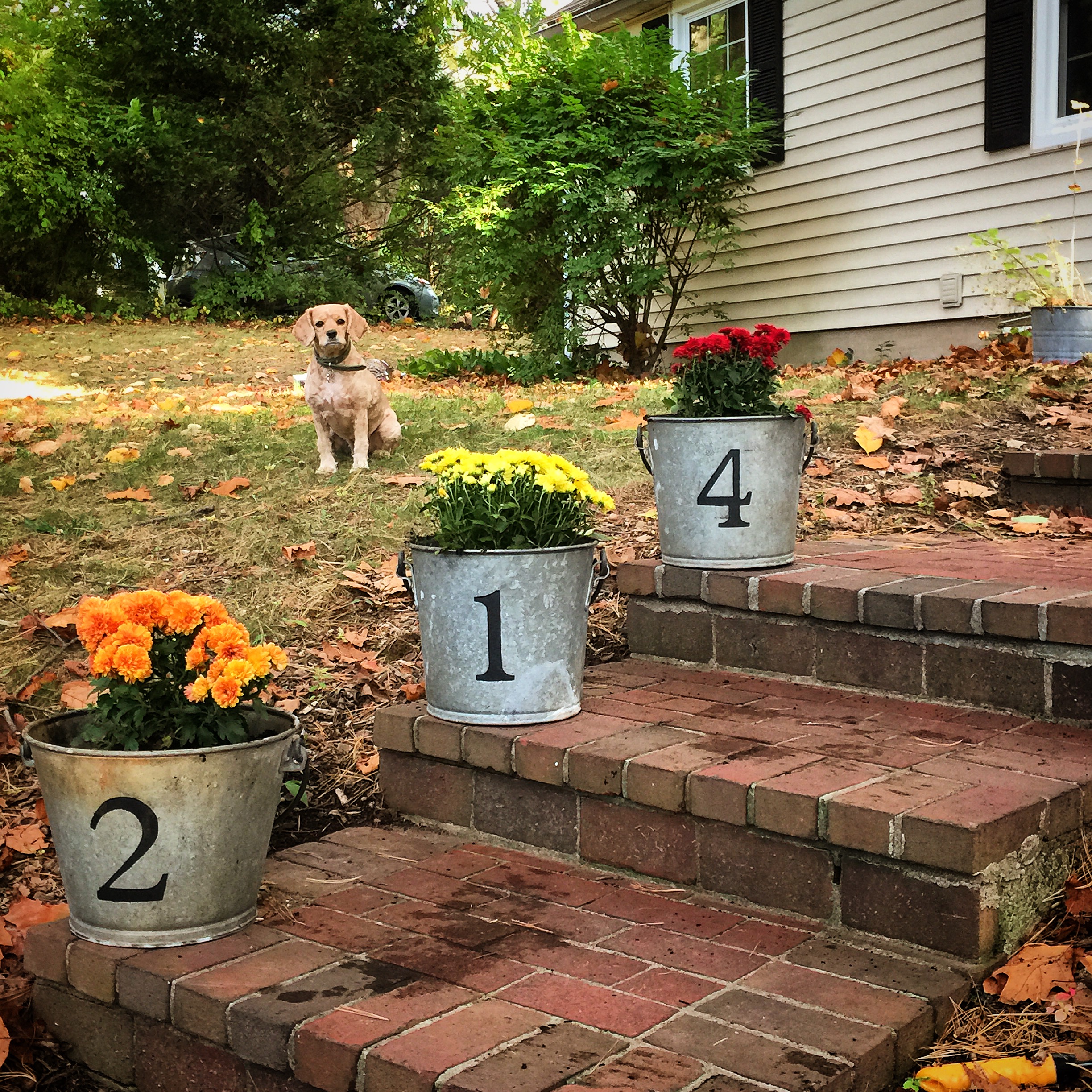 I was actually a little hesitant about buying the mums because I had a project I had been meaning to do and just didn’t get around to doing it. I actually said to Pete, “If we get mums that means I’m going to have to do the buckets.” To which he insisted on getting the mums. As usual, he was right, it was a great idea.