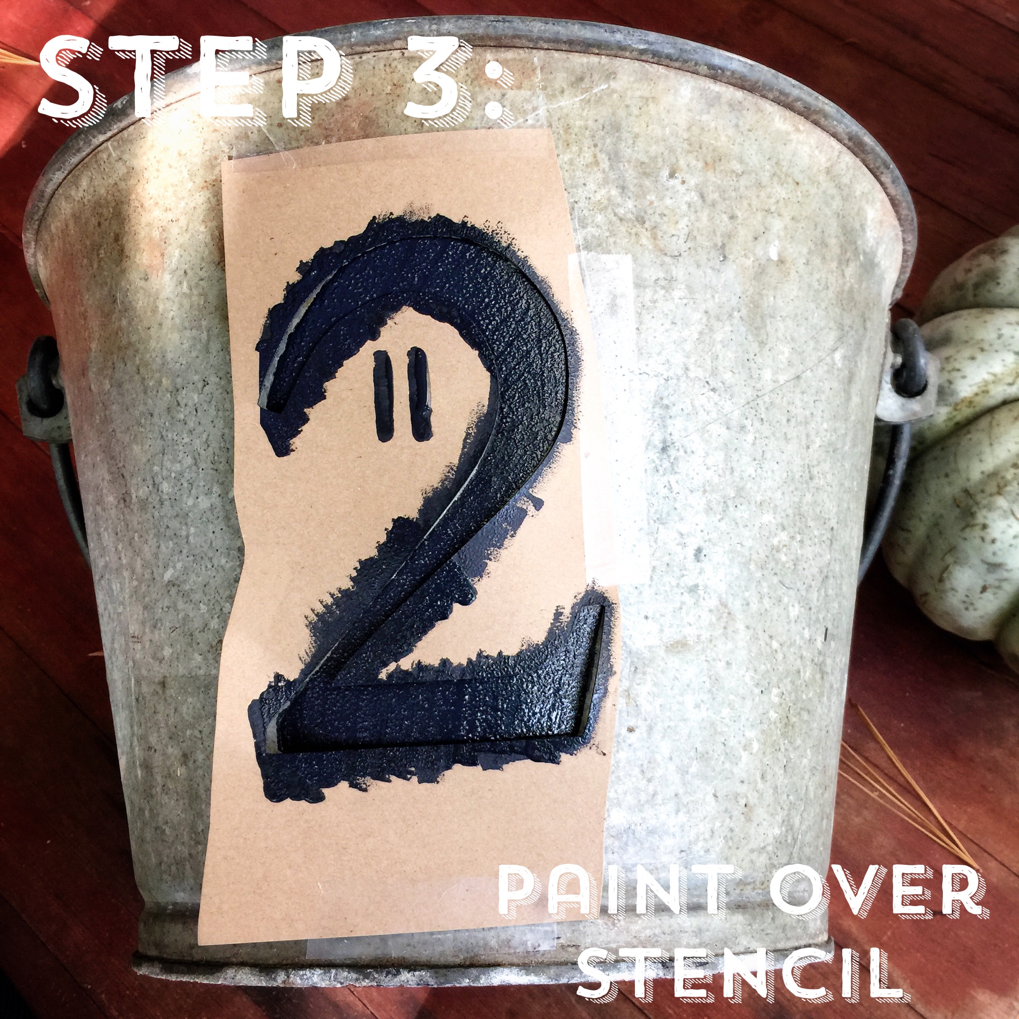 Remove stencil once the paint is dry. If there was any bleeding of the paint (you can see a little in this photo) just take some Goof Off and a Q tip and clean up the edges. It comes right off. Next, just add your soil and flowers and you are set!