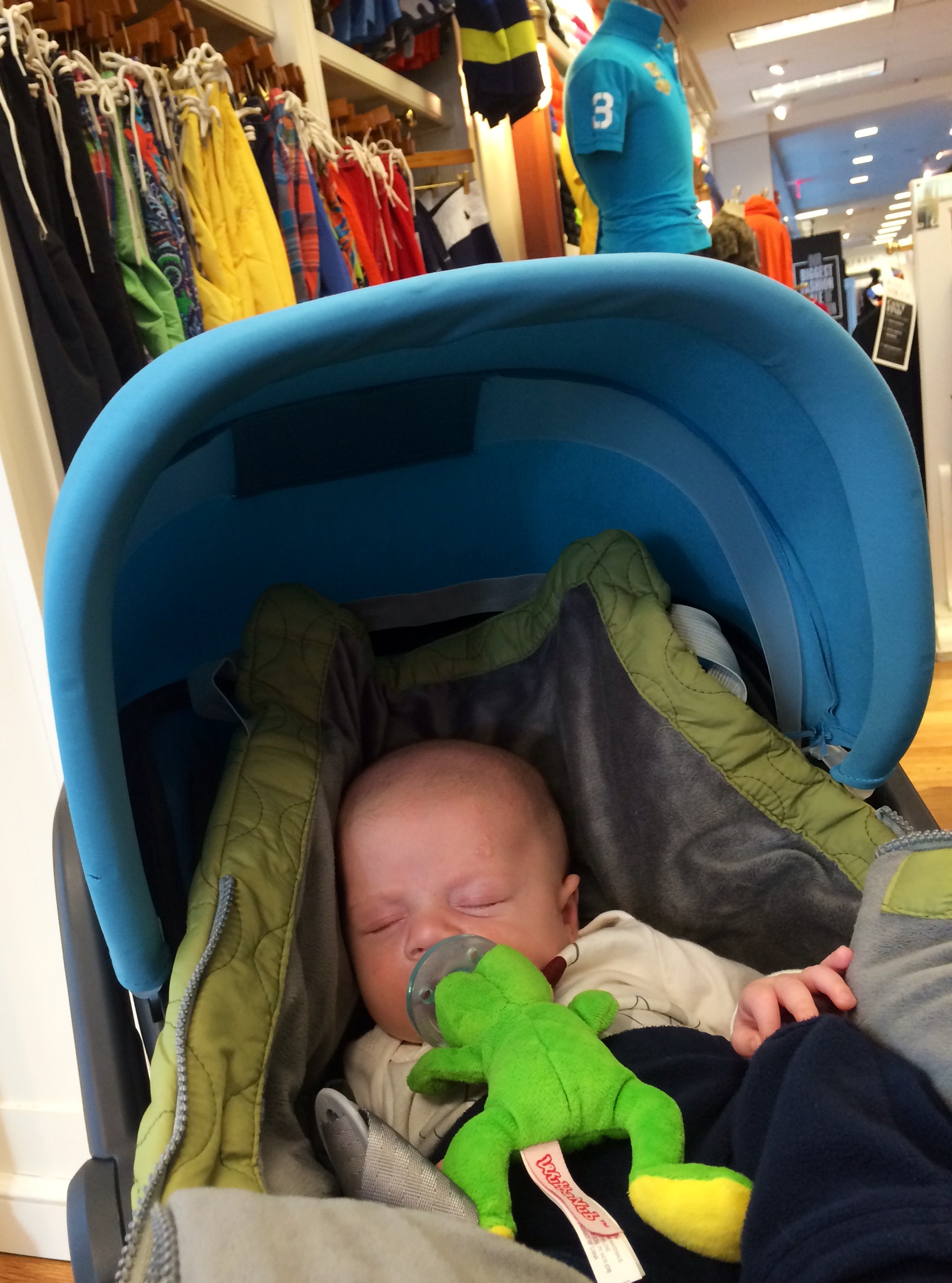 9. Celebrate small wins – One of my best friends offered me great advice (thanks Bethany!). She said, don’t get worked up about all the things you don’t accomplish during the day with an infant, instead celebrate one or two small things you successfully tackle. For example, today my goal is to write three thank you notes and finish my blog post. So far, so good 🙂 This past weekend Kristian, Caleb and I tackled our first shopping outing at Lord and Taylor together. Caleb loved the colors in the Ralph Lauren section!