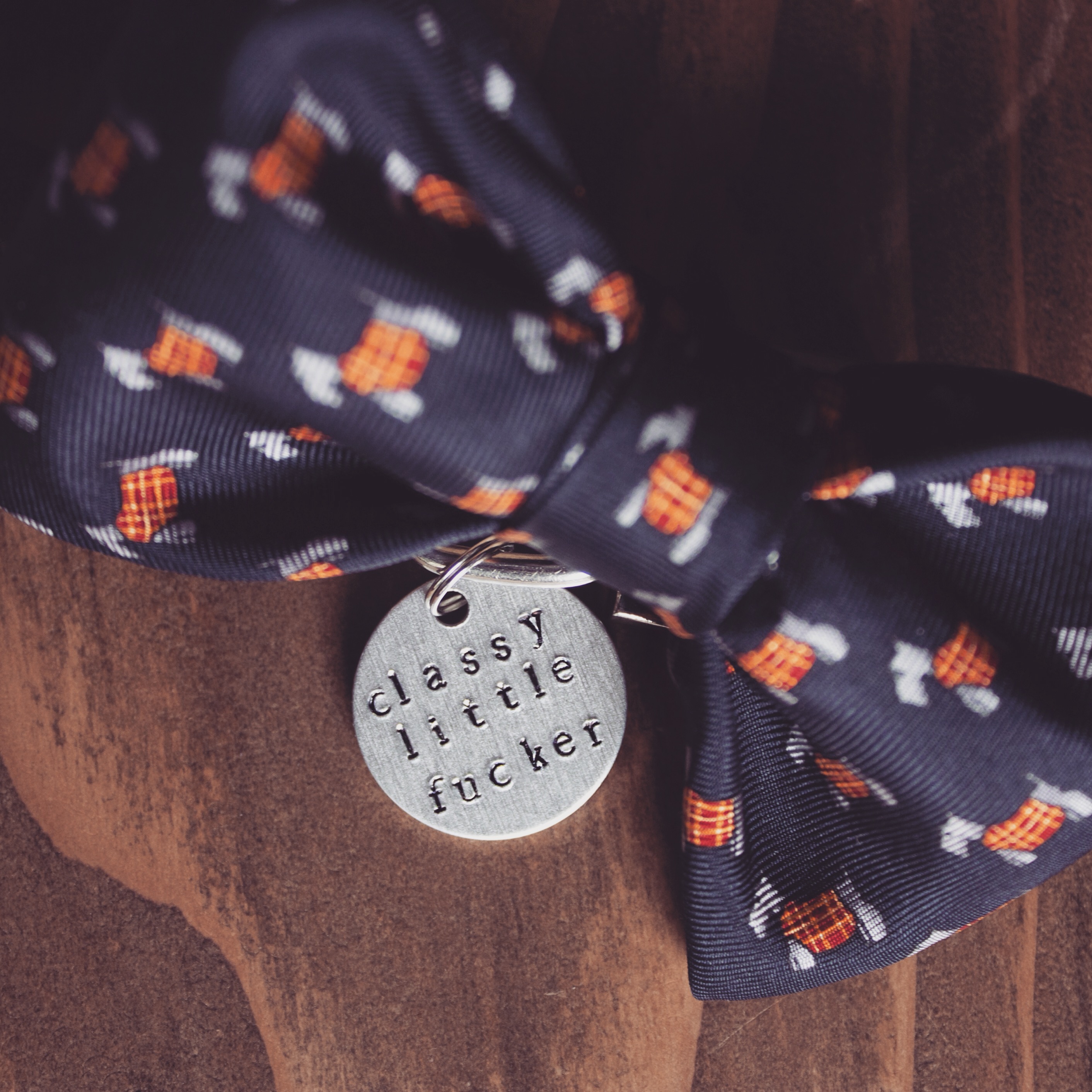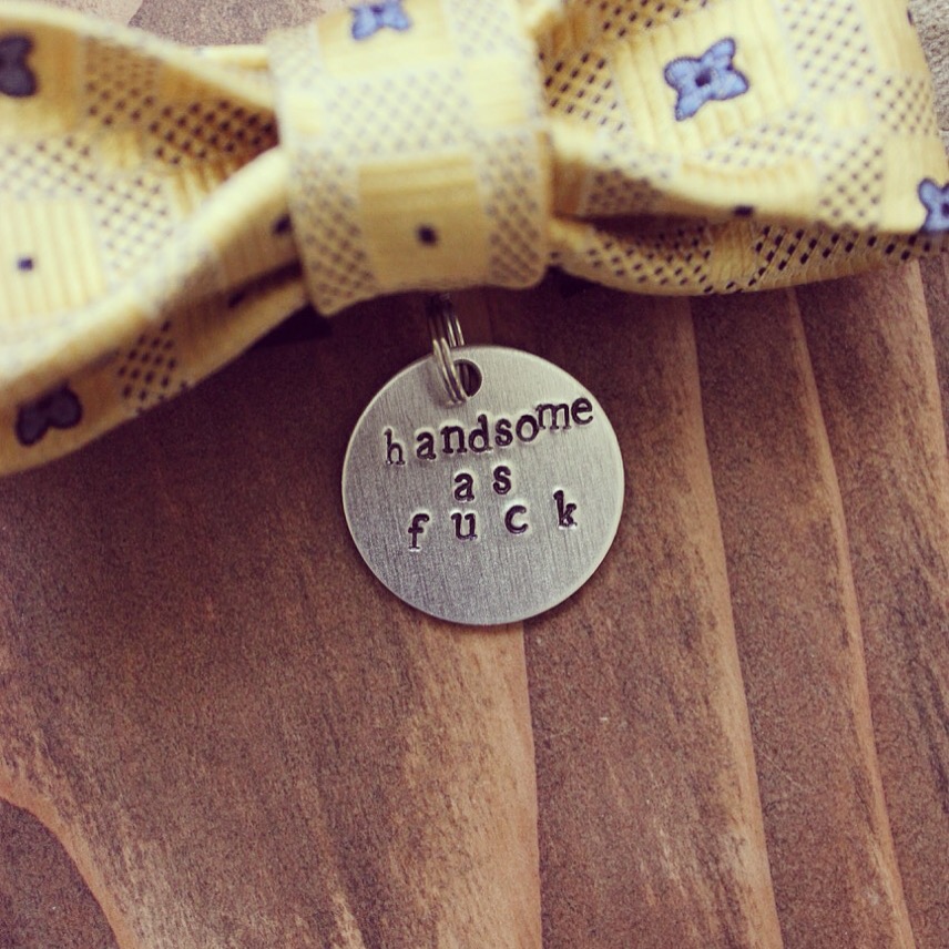 The last time I blogged, it was about how I had just opened up my Etsy shop. Well I am happy to report that thRUFFty Pup is doing amazingly well! I’m not going to lie- that first 3 weeks were a rough start but once I got my first sale, it got easier and easier. I have expanded from bow ties, neckties, and rosettes to now selling dog tags which people are really loving. I have named the dog tag line RUDEdog and once you see them it will be quite obvious why. Dog owners with a great sense of humor are definitely required. There is also a GOODdog line as well, so don’t worry.