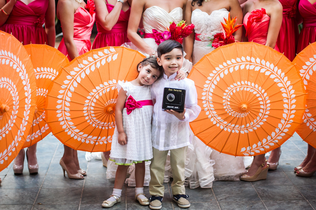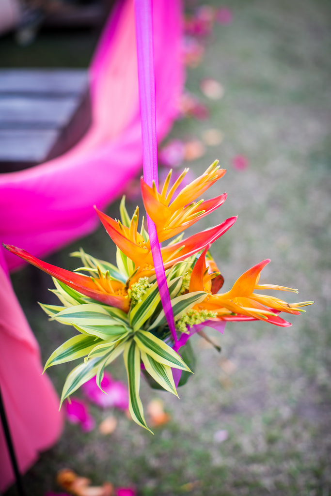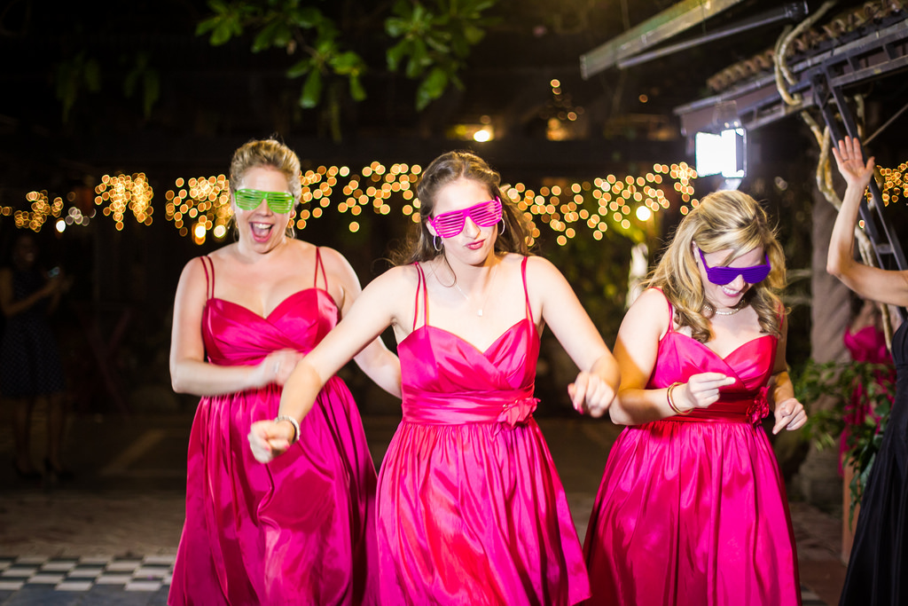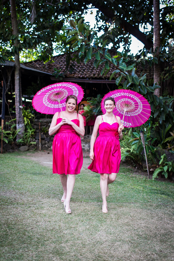 The ceremony and reception featured hot pink and coral decor accents, accessories and flowers galore. Bridesmaids modeled Wtoo dresses and carried coordinating parasols down the aisle (Did I mention I was lucky enough to be a bridesmaid?) You even saw pops of color in the brides accessories, sashes and shoes.
