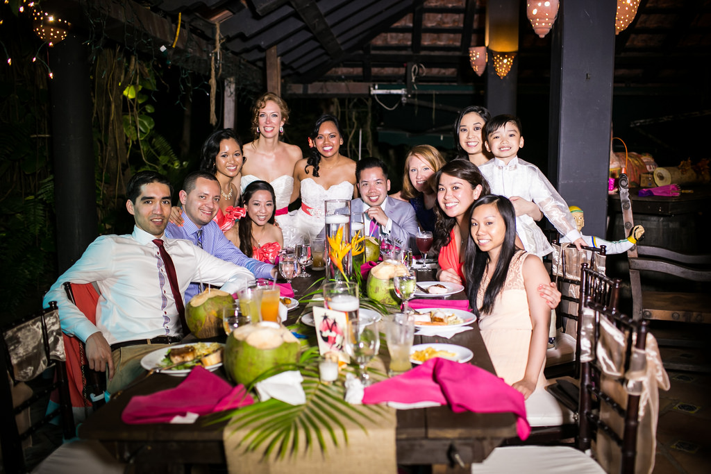 The space boasted bright spanish tiles, impressive gardens, indoor/outdoor event spaces, a pool table and a cozy fireplace with lounge furniture for guests to relax and take in the ambiance. The venue was complete with an in ground pool and fountain that guests may have found themselves in by the end of the evening. You couldn’t beat dancing under stars with a coconut drink in hand in the middle of the rainforest.