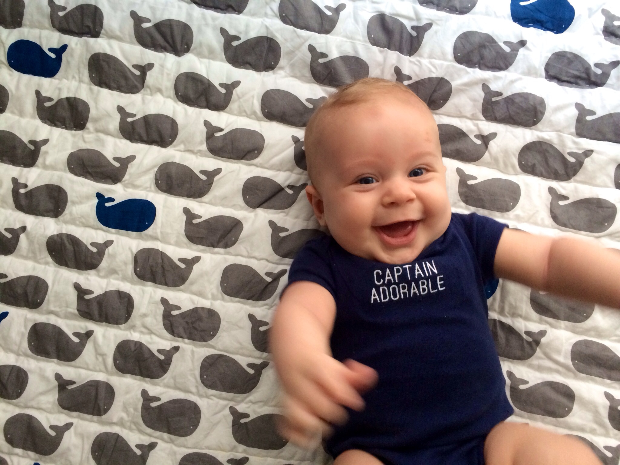 We have the Land of Nod and good friends to thank for the Cap’n’s charming whale bedding, changing pads and accessories. We added some bright yellow graphic pillows from etsy and some special cuddly friends (Thanks Aunt Katie and Uncle Blake) to introduce a diverse mix of patterns.