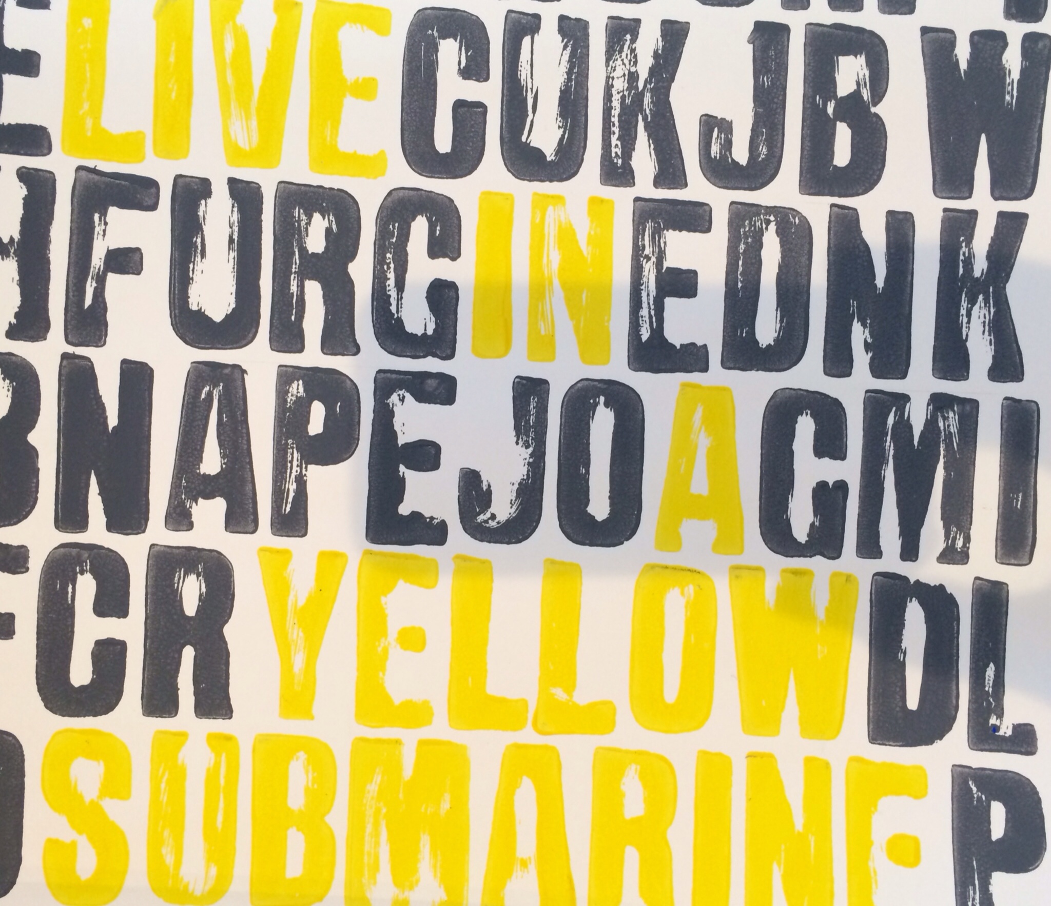 Next, a print of the Beatles’ “We all Live in the Yellow Submarine“ lyrics. When we were in the hospital, I realized I couldn’t remember any lullaby’s so I started singing Caleb some Beatles classics. The Cap’n is already a big fan.