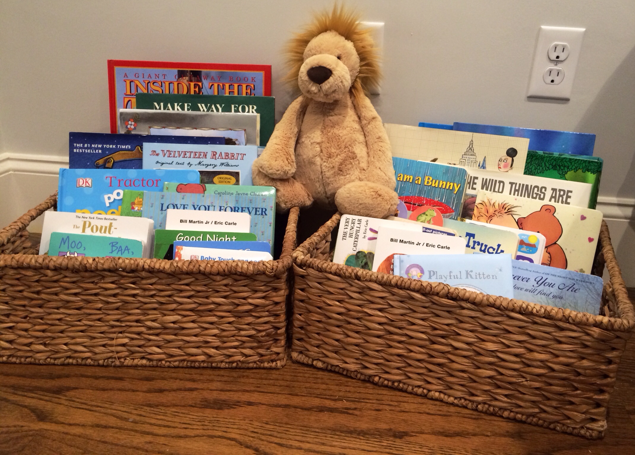 These storage baskets have a great coastal feel and are super convenient when it is time to choose a book for story time.