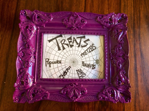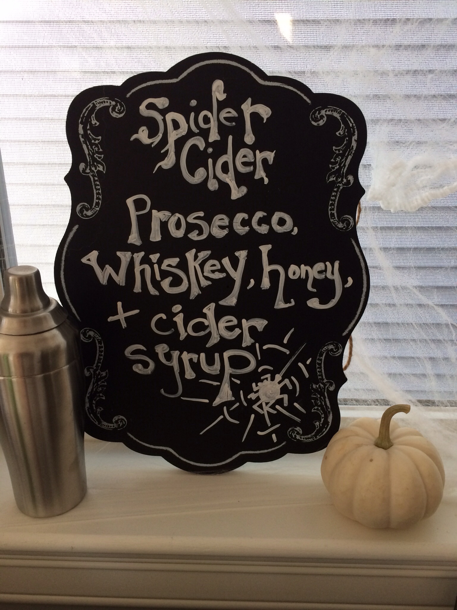 For menu and bar signs, we pulled out blackboards we already owned or printed out pictures of spider webs online and hand wrote the lettering with markers.