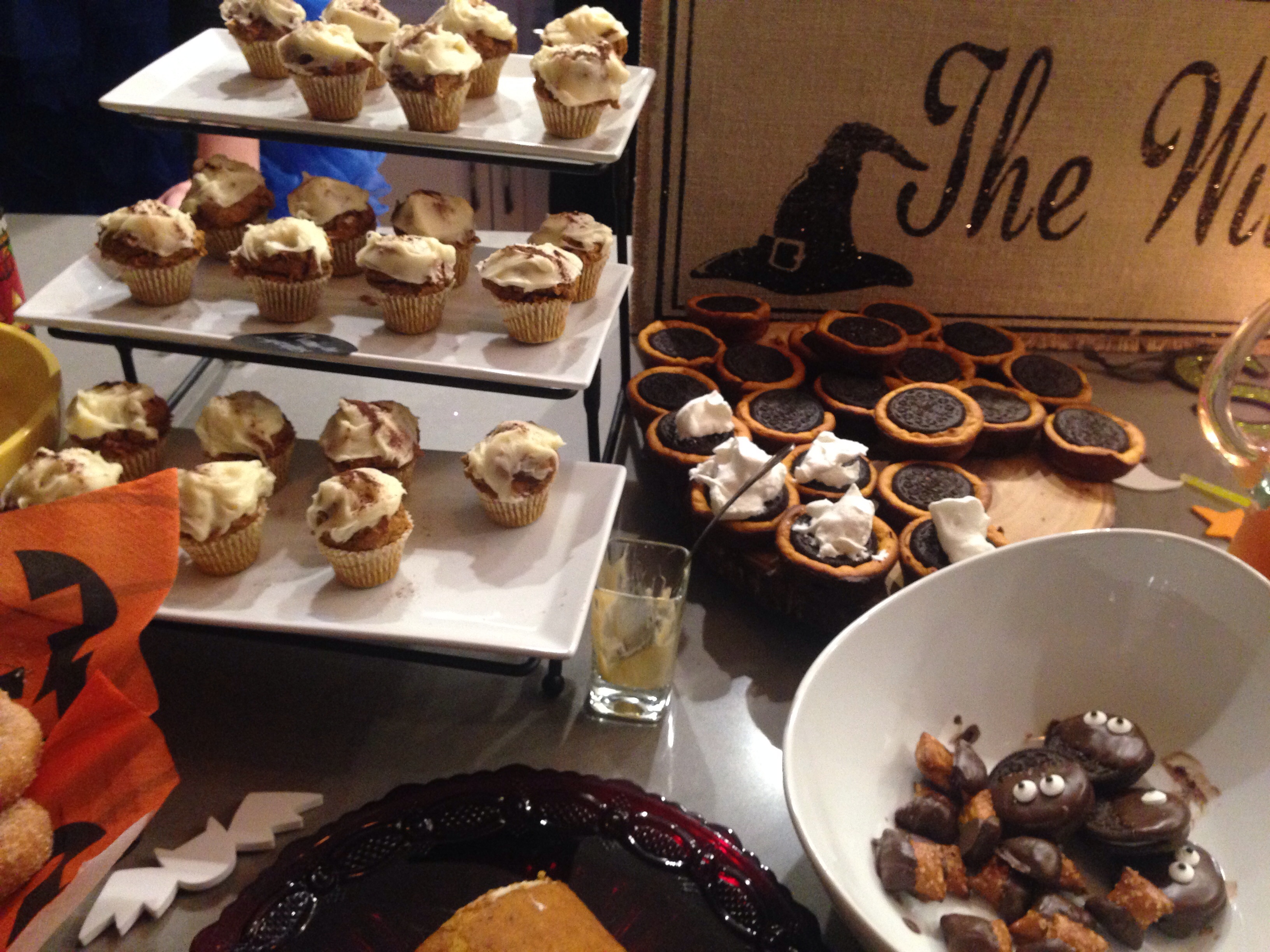 Finally, guests moved to the top floor for Corey and John’s devilishly delicious dessert bar, featuring Fireball Pumpkin Pudding shots and Apple Cider Donuts from the city’s Blackbirds bakery. They also made homemade pumpkin cupcakes, chocolate covered strawberries and oreos (with candy eyeballs) and a pumpkin log….talk about TREATS.
