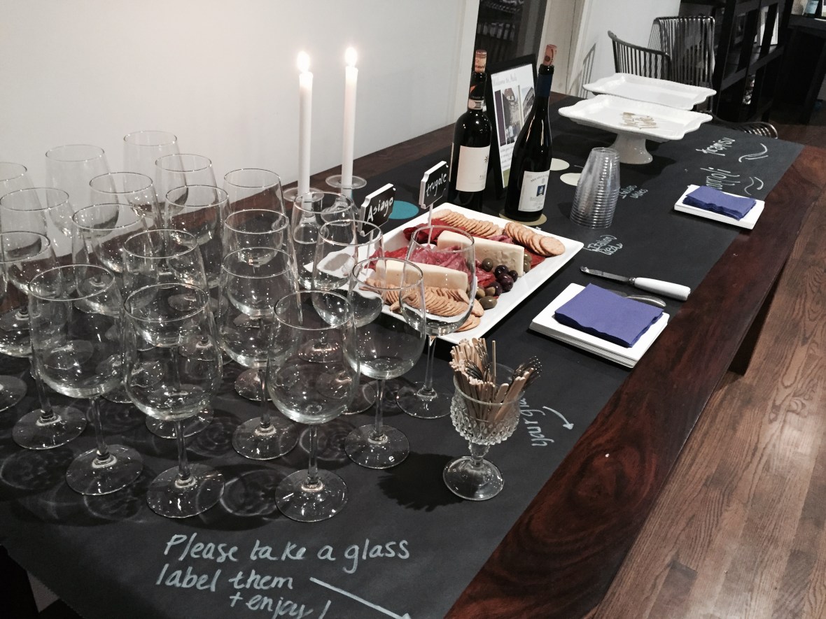 My new favorite decor tool is chalkboard table runner paper! I attached it to all of my display tables and then used chalk markers (not actual chalk ) to write notes and label the wines. You can find this paper online on Amazon, in most craft stores or even at Target.