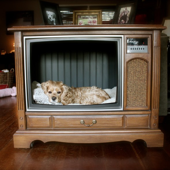 pUPdated Console TV Dog Bed